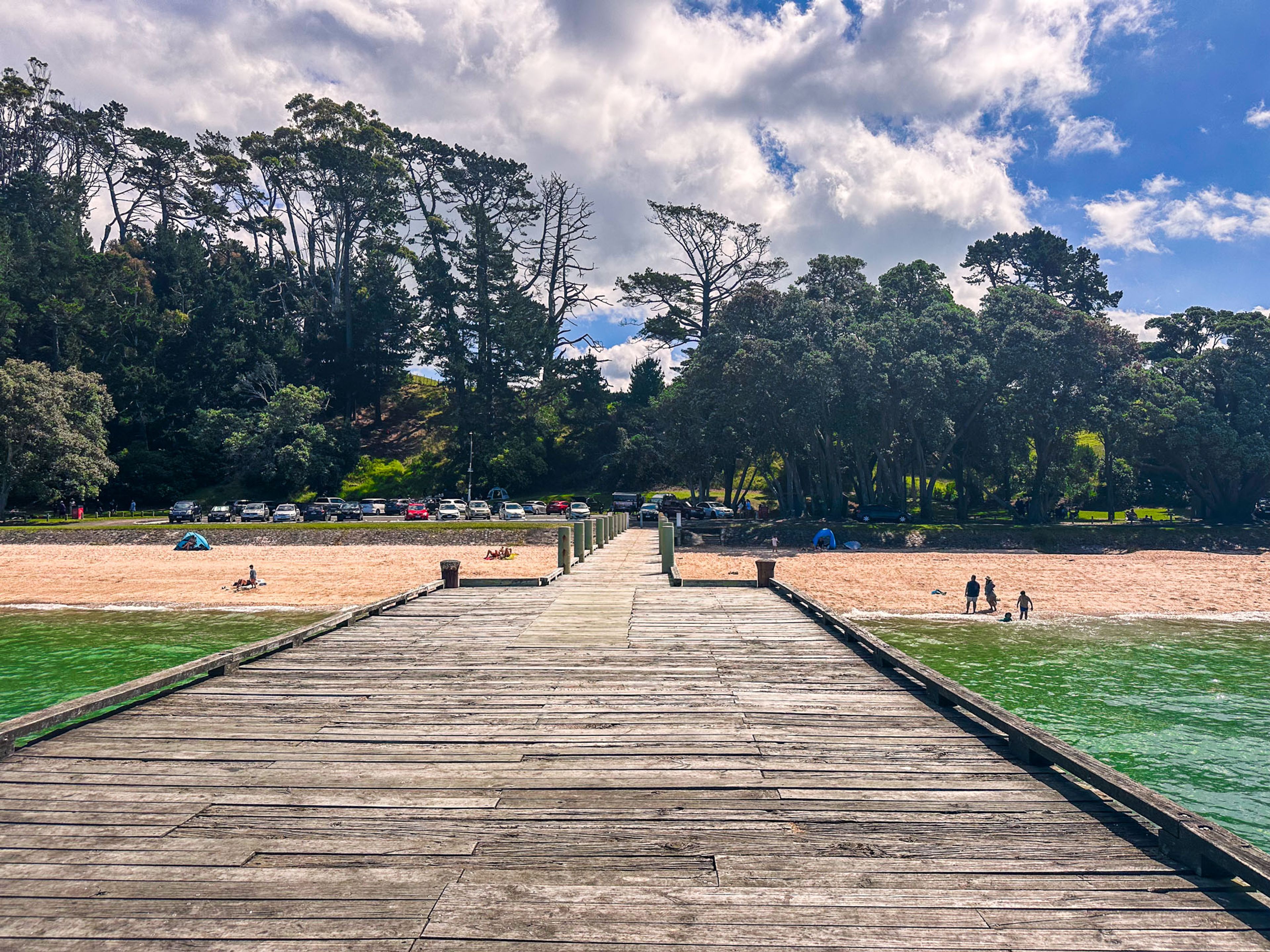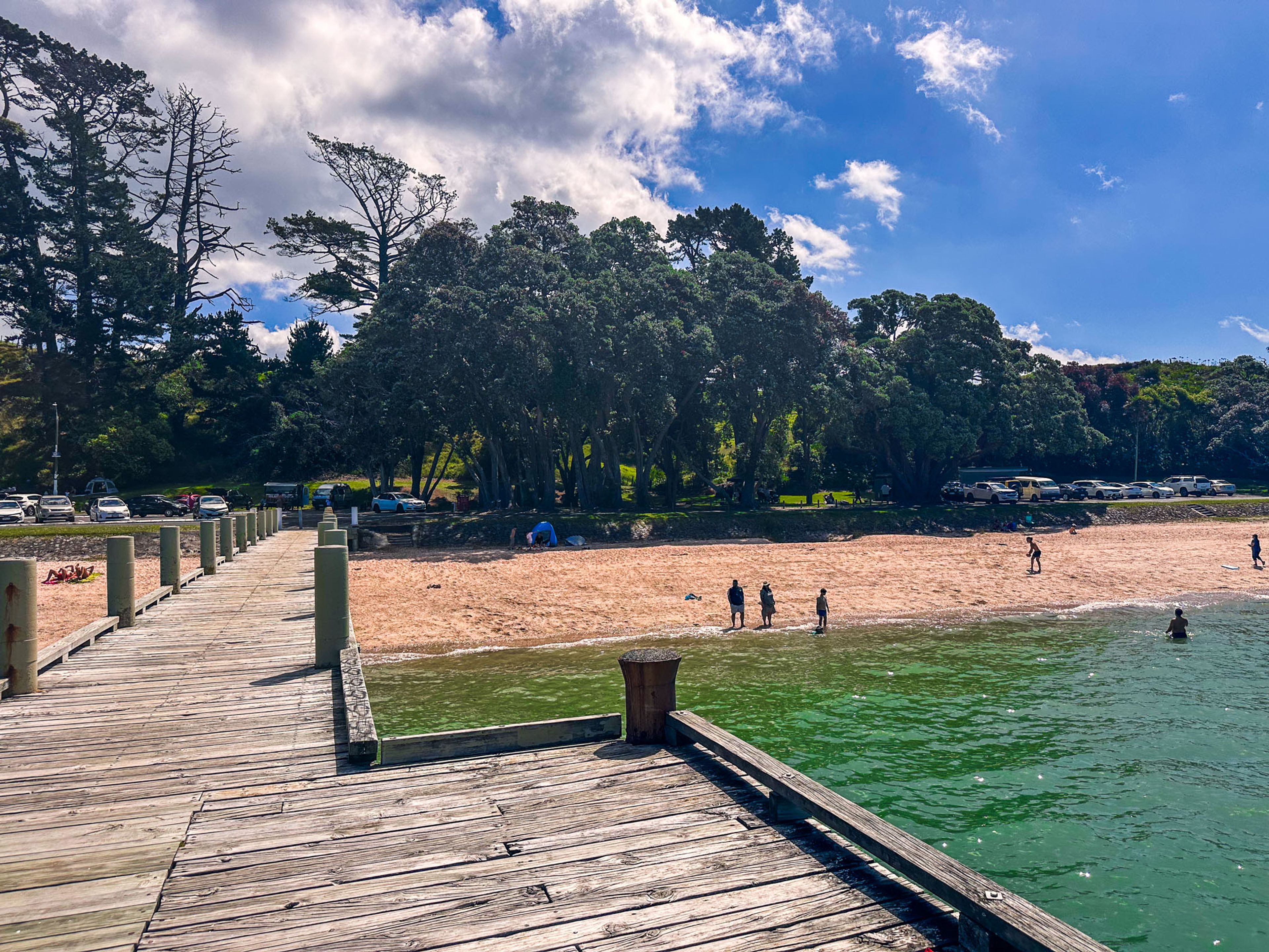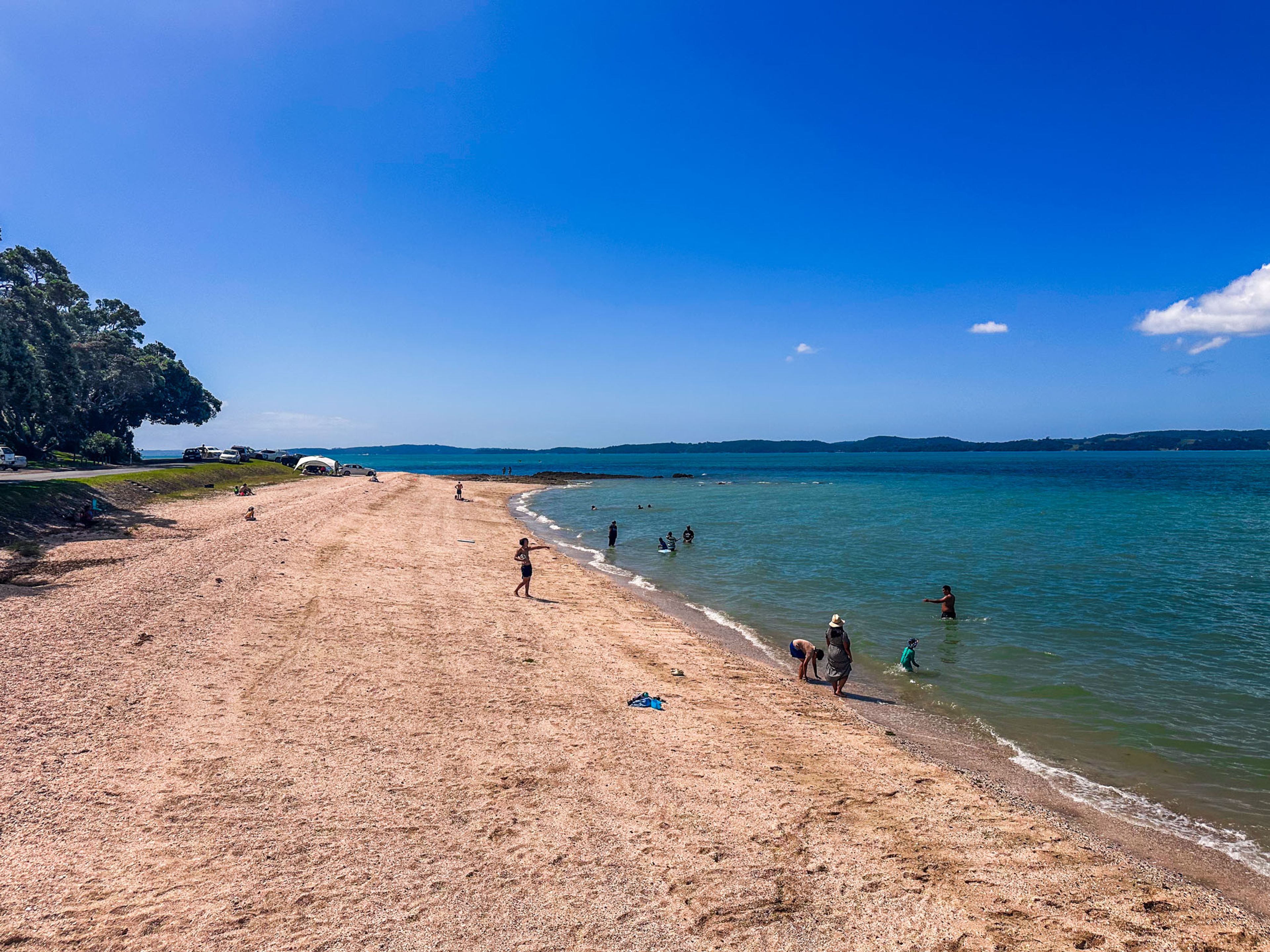 Despite its proximity to the road and the short walk from Maraetai, Magazine Bay, along with neighbouring Waiomanu Beach, feels surprisingly secluded. A large grove of pōhutukawa trees offers a natural barrier, enhancing the sense of privacy. However, the area can become crowded during summer holidays and weekends, so visiting during quieter times is advisable. Parking is located on the north side of the road.